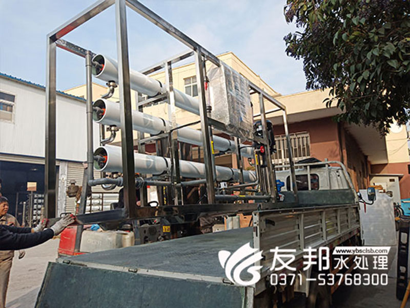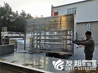 鄭州友邦水處理設備發貨日常:安徽正杰新材料10噸單反滲透設備發貨