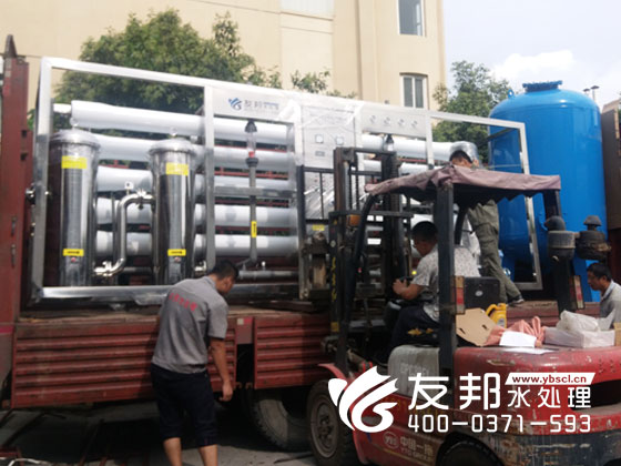 2018年8月9日在鄭州友邦師傅們的共同協(xié)作下20噸蘇打水反滲透純凈水設(shè)備已經(jīng)順利裝車發(fā)貨,這是發(fā)往焦作地區(qū)用作蘇打水生產(chǎn)線的擴(kuò)大生產(chǎn)。