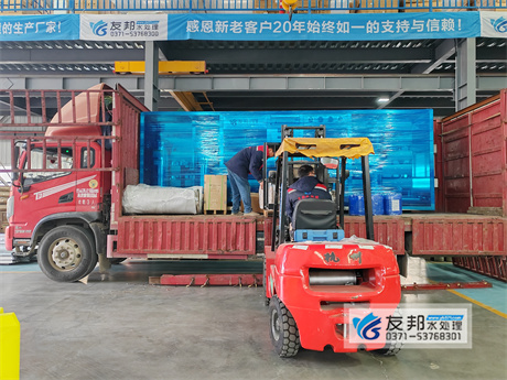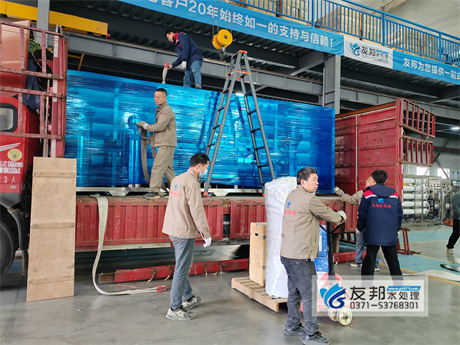 近日,鄭州友邦為新密洗滌行業量身定制的反滲透純水設備已順利裝車發貨。