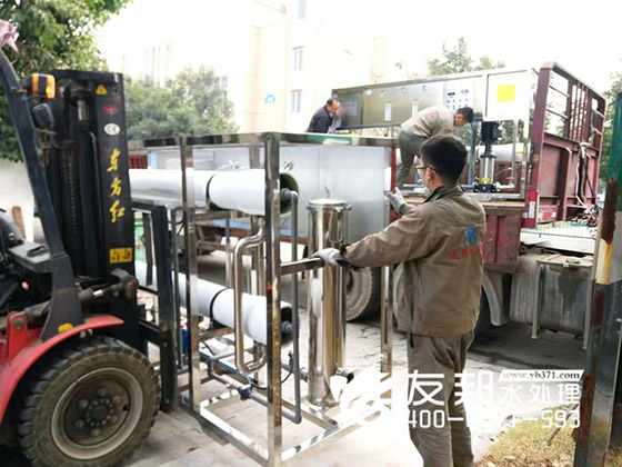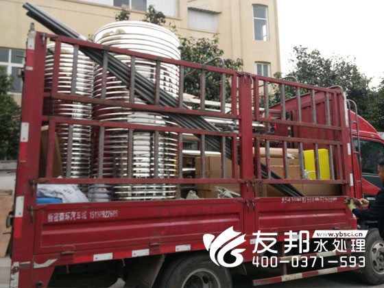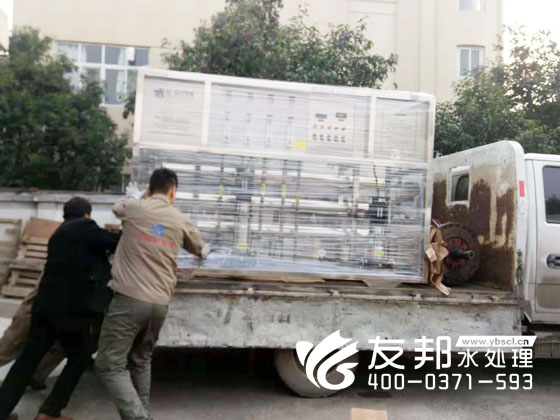 鄭州友邦正在裝車是這套每小時出水2噸的純凈水設備,發往開封電器有限公司。