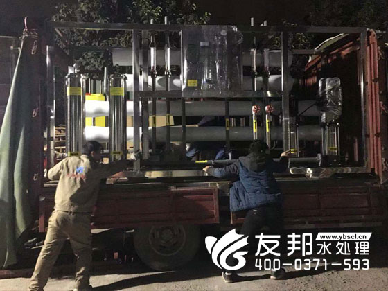 昨天已經立冬,早上起來寒風乍起。但這都不影響友邦員工堅持發貨。這是一套發往三門峽市的5噸純凈水設備。冬天已經來臨客戶們一定要注意設備的維護和保暖技巧。