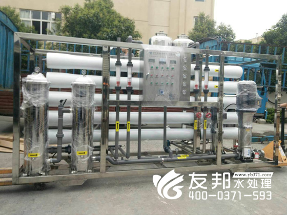 這套河南友邦生產5噸純凈水制取裝置由預處理、反滲透技術及精