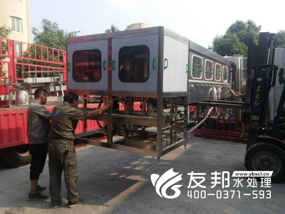 監獄是一個相對封閉的空間,為了解決人員的飲水問題,保障人員的飲食安全可以引進純凈水設備有效解決這一問題。今天正在裝車發貨的4套5噸單級純凈水設備就是發往河南省某監