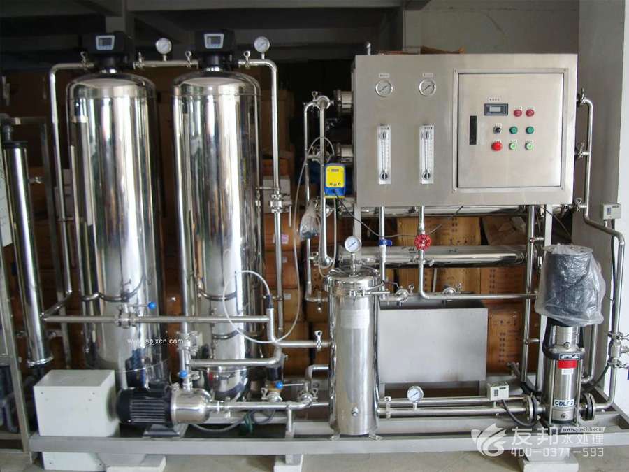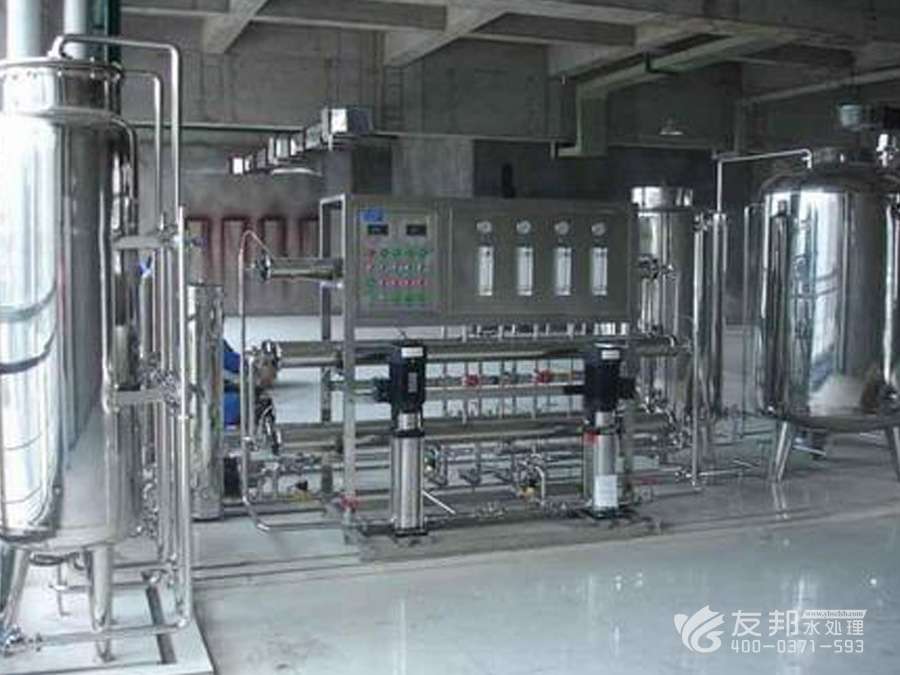 2、預(yù)處理→反滲透→中間水箱→水泵→EDI裝置→純化水箱→純水泵→紫外線殺菌器→拋光混床→0.2或0.5μm精密過濾器→用水對(duì)象(≥18MΩ.CM)(最新工藝)。